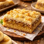 J’ai toujours une grosse envie de comfort food quand j’ai des bananes trop mûres sur le plan de travail — ces barres à la banane sont ma solution rapide et gourmande. Moelleuses, légèrement sucrées et surmontées d’un glaçage au fromage à la crème, elles sont parfaites pour le goûter, un brunch improvisé ou pour utiliser les fruits qui traînent. Elles se préparent en un tour de main et plaisent aux enfants comme aux adultes.