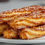 - Présentation : disposez les churros en éventail sur une assiette, saupoudrez d’un peu de sucre glace et ajoutez une touche de zeste d’orange pour la couleur.
